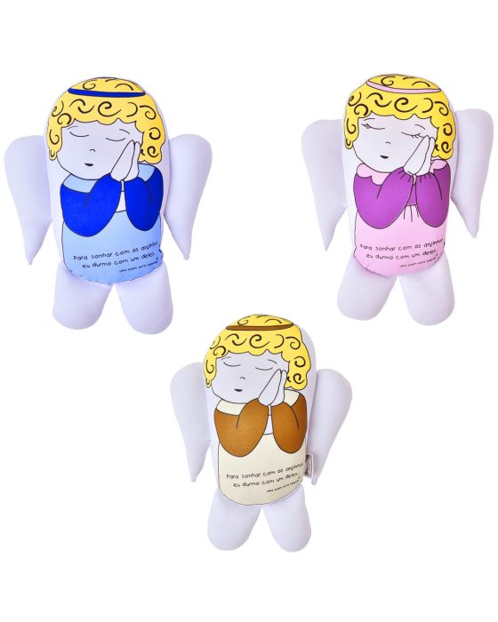 Naninha de anjinho confeccionada em tecido 100% algodão, enchimento e estampa antialérgica.
